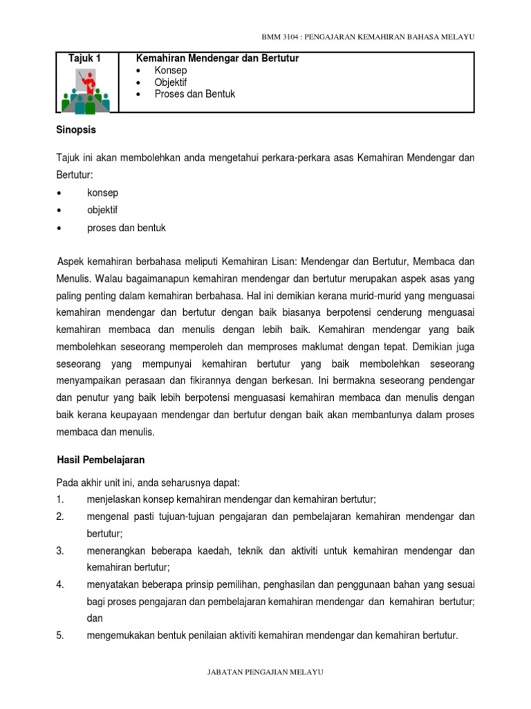 Pdf Tajuk 1 Kemahiran Mendengar Dan Bertutur Bullet Konsep Bullet Objektif Bullet Proses Dan Bentuk Thamil Naidu Academia Edu