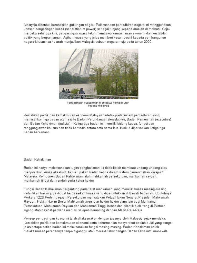 Doc Doktrin Pengasingan Kuasa Dan Pengamalannya Di Malaysia Docx Muhammad Iskandar Academia Edu