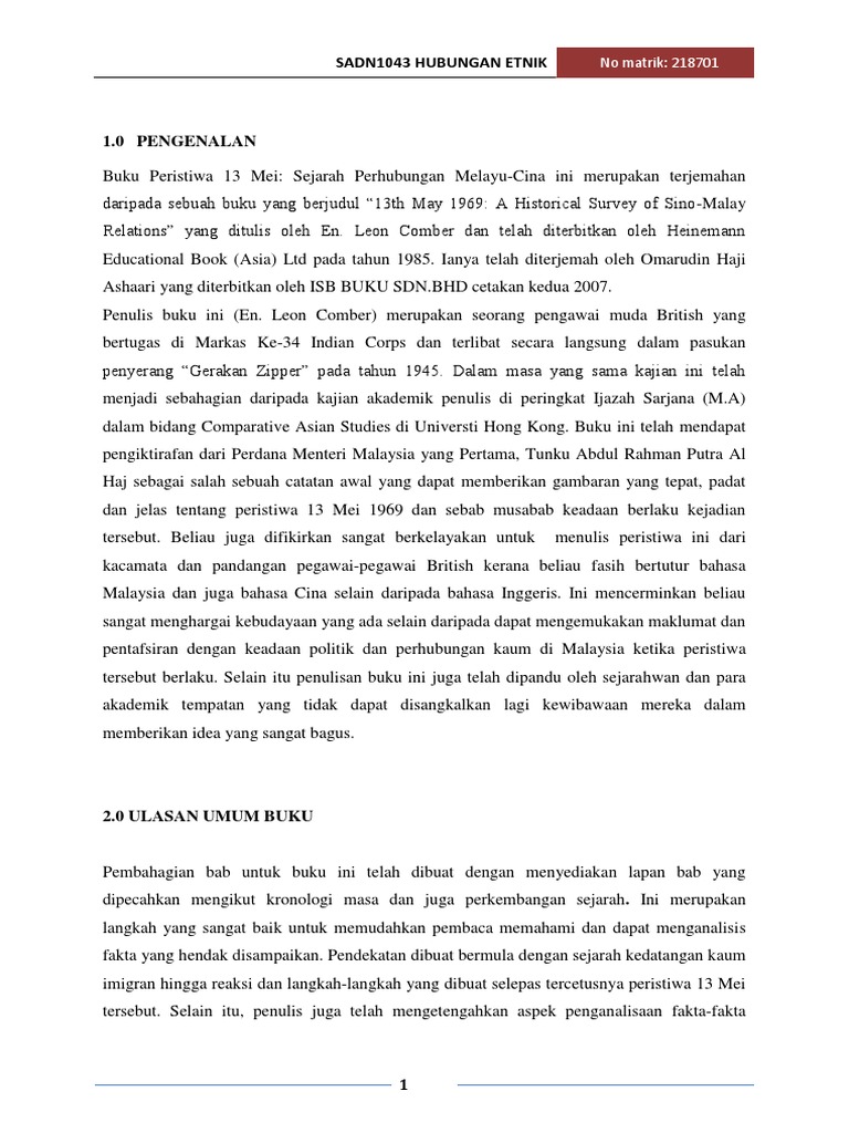 Peristiwa 13 Mei 1969 Mpu Hubungan Etnik 3123 Intec Studocu