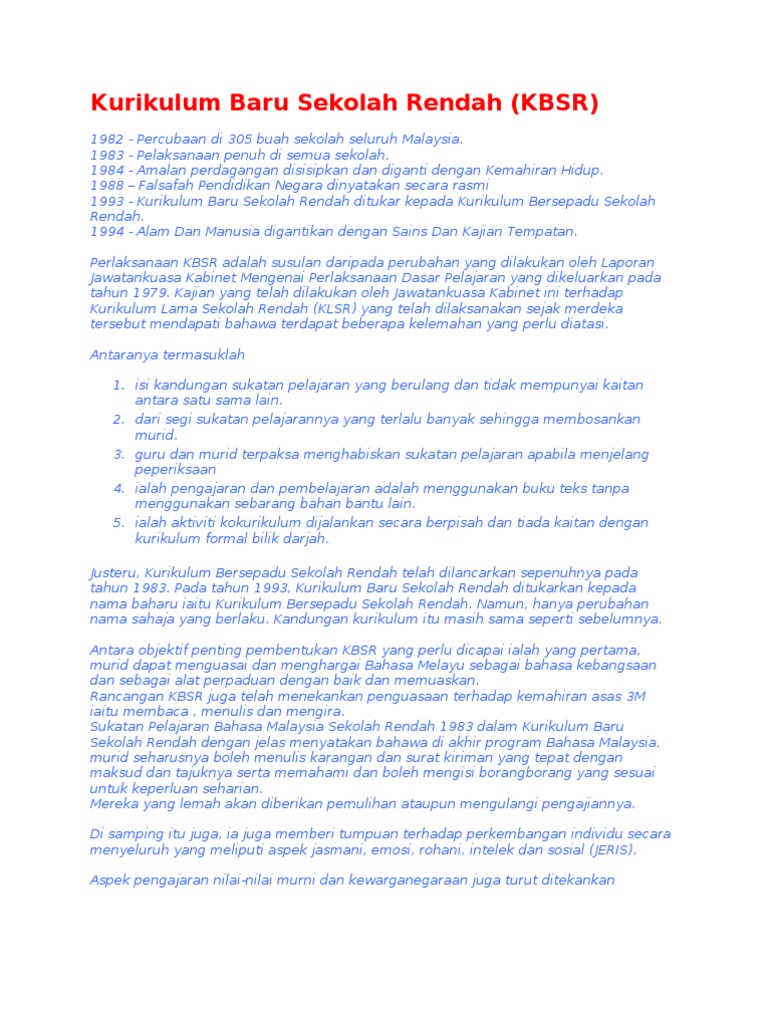 Kbsr Kurikulum Bersepadu Sekolah Rendah By Acronymsandslang Com