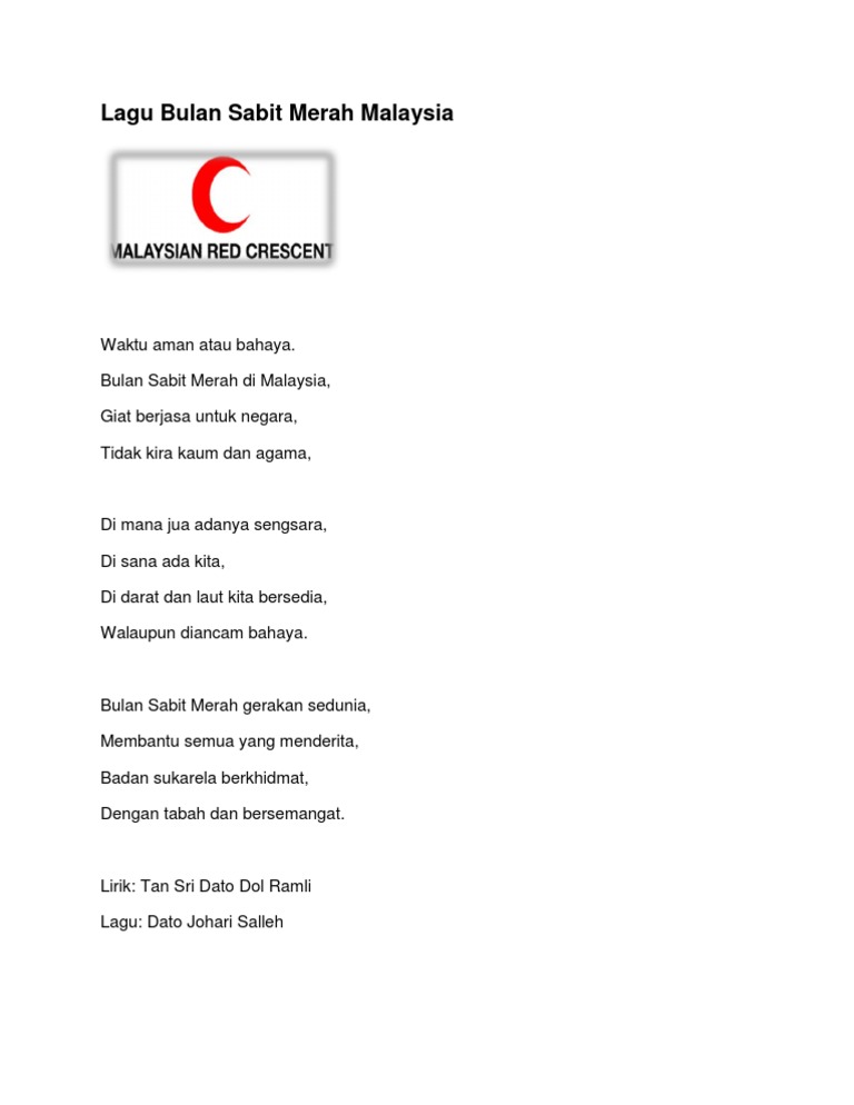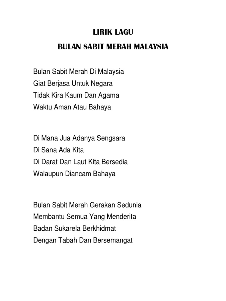 Lagu Bulan Sabit Merah Malaysia Lirik