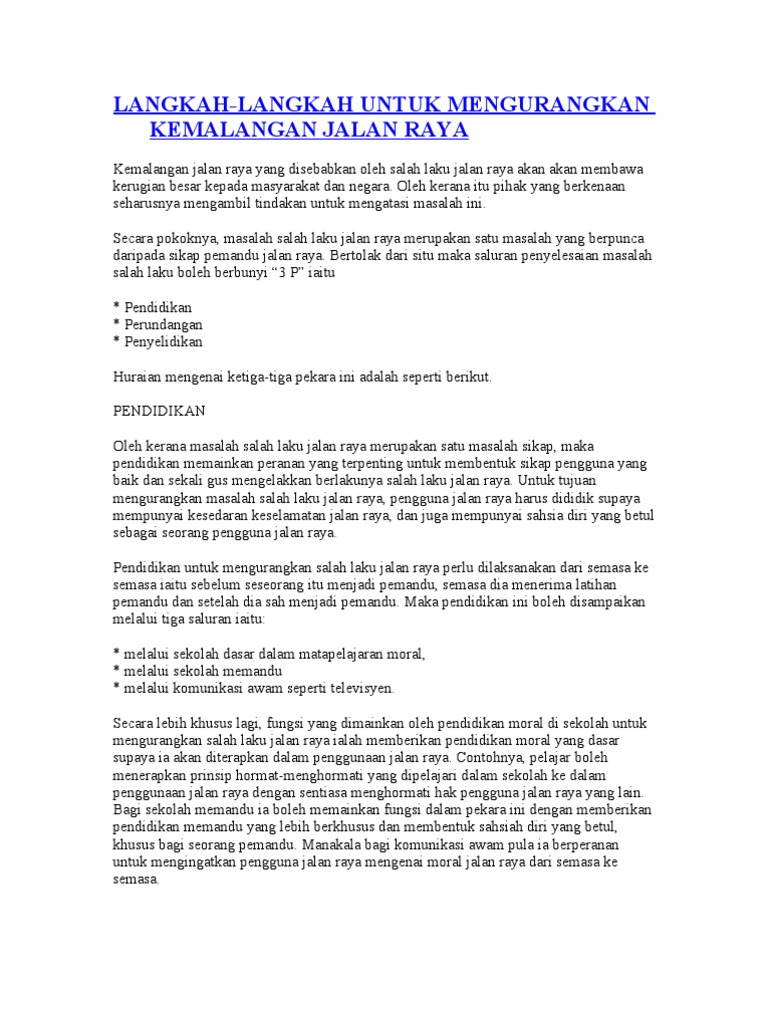 Karangan Docx Langkah Langkah Mengurangkan Kemalangan Jalan Raya Langkah Yang Boleh Dilakukan Untuk Mengurangkan Kemalangan Jalan Raya Adalah Dengan Course Hero