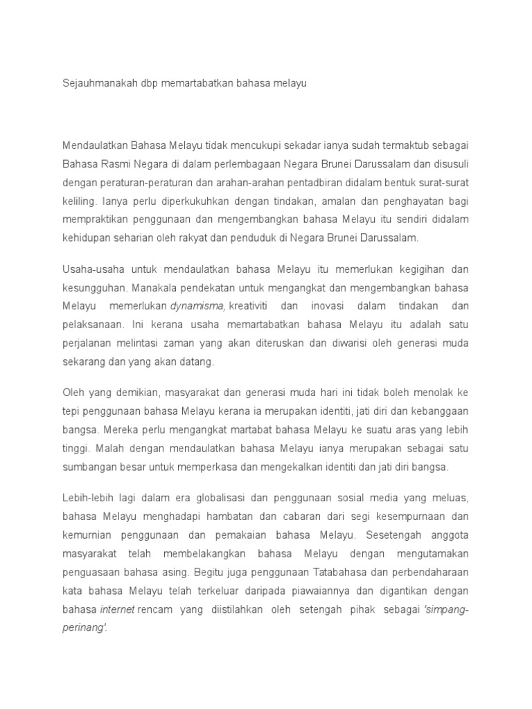 Sejauhmanakah Dbp Memartabatkan Bahasa Melayu