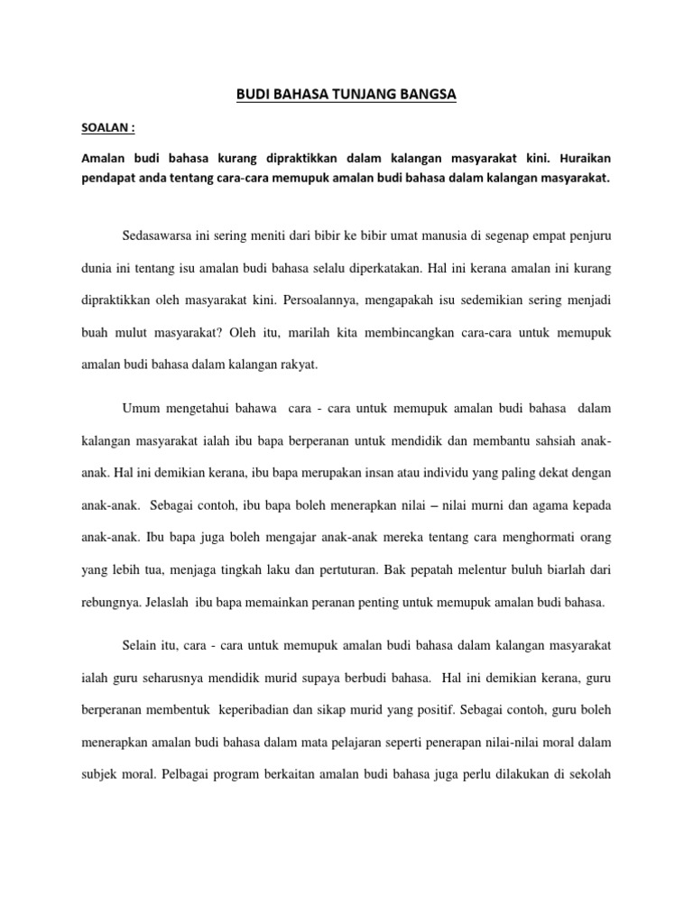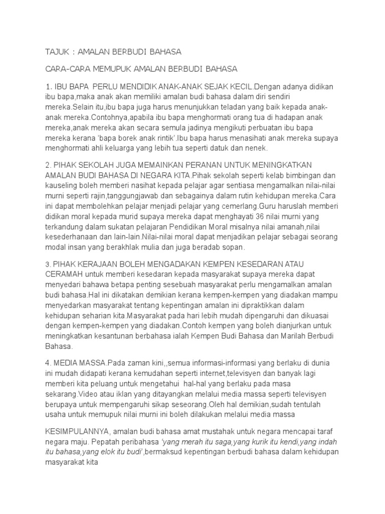 Usaha Memupuk Amalan Berbudi Bahasa Dan Kepentingannya Docx