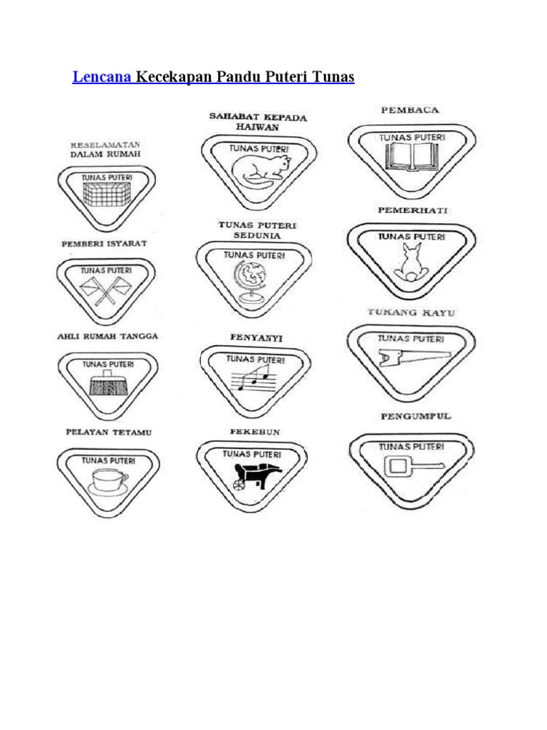Lencana kecekapan pandu puteri tunas. Pada mulanya pandu puteri tunas dikenali dengan nama brownie. Persatuan pandu puteri tunas malaysia lkl. Lencana kecekapan 10 upacara terbang naik 11 hari kokurikulum 2009 12 pelaporan 2009 13 perancangan 2010 9. Pandu puteri mempunyai cogan katanya sendiri iaitu selalu sedia.