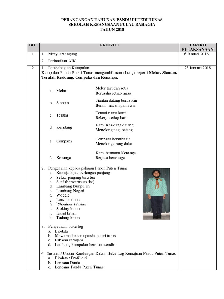 Pandu puteri remaja memakai pakaian seragam berwarna biru dan hijau. Pilihan mana mana satu 1 daripada kumpulan a atau c catatan. Pandu puteri selalu menurut ajaran orang yang. Carta gantt program pelan taktikal bil aktiviti jan feb mac apr mei jun jul ogos sept okt nov 1 mesyuarat pemimpin pandu puteri tunas 2 mesyuarat ahli pandu puteri tunas 3 pengenalan.
