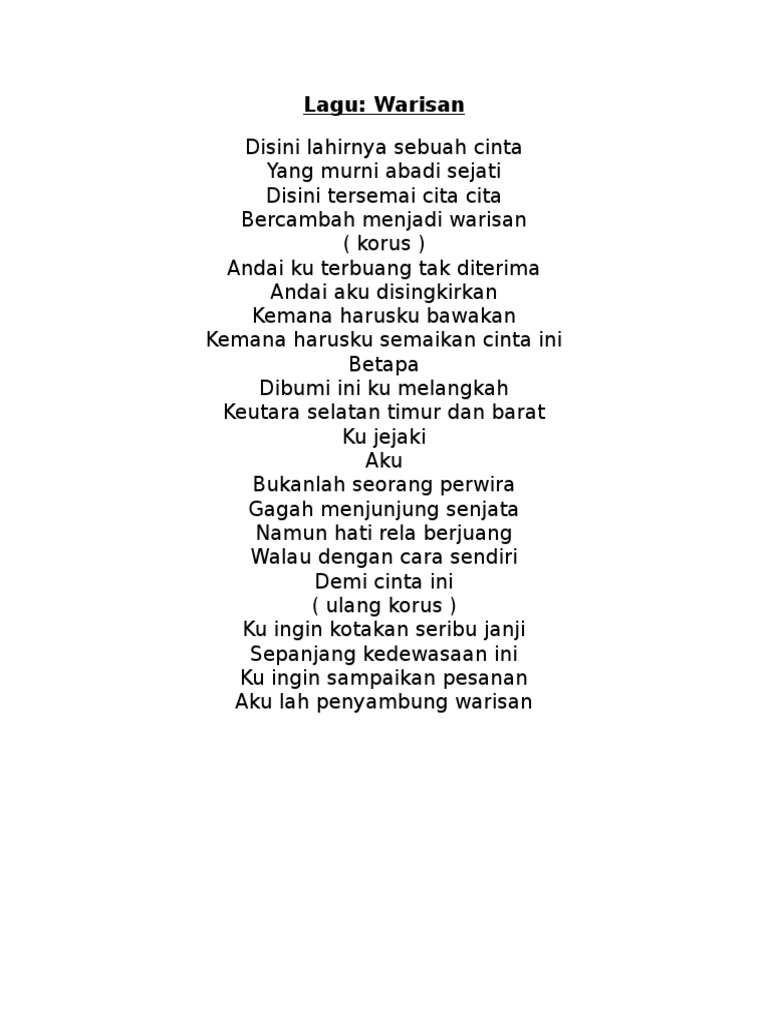 Lirik Lagu Warisan