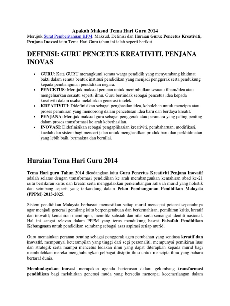 Apakah Maksud Tema Hari Guru 2014 Docx