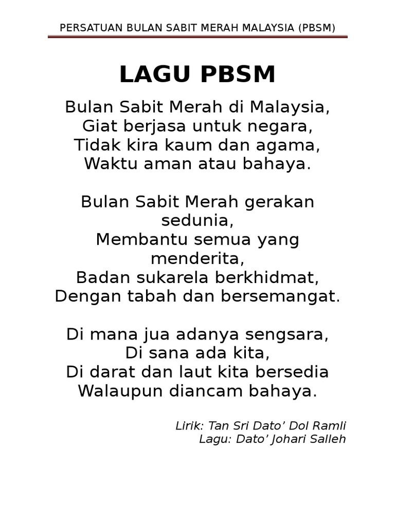 Lagu Pbsm Persatuan Bulan Sabit Merah Malaysia Pbsm