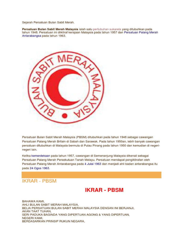 Lencana Persatuan Bulan Sabit Merah Docx Document