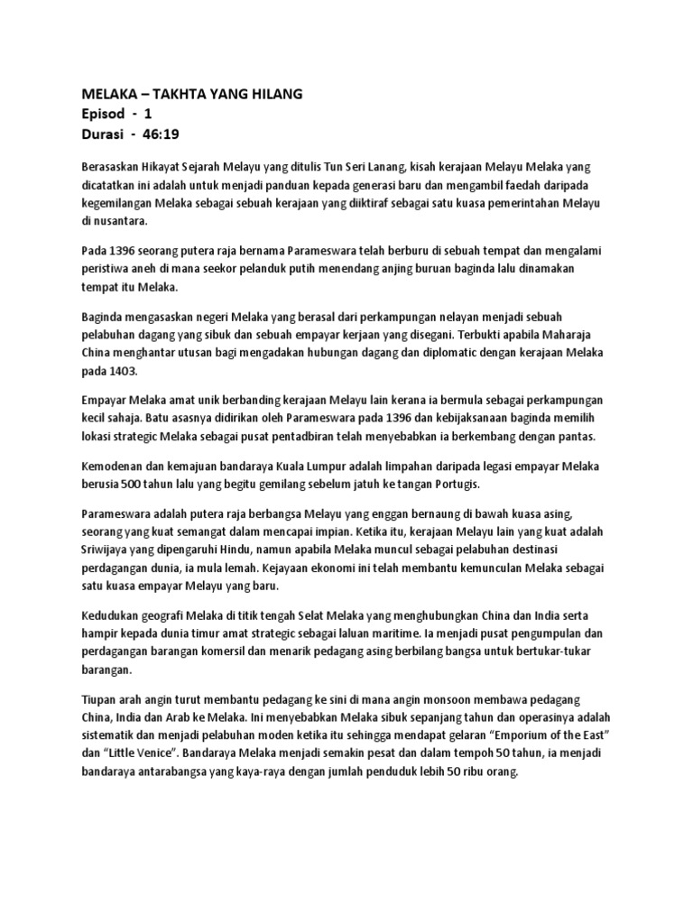 Melaka Takhta Yang Hilang Episod 1 Durasi 46 19