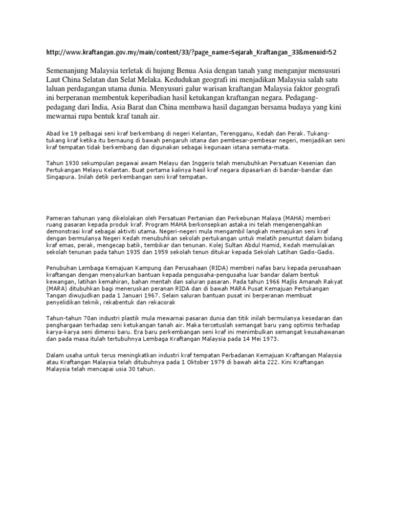 Sejarah Seni Kraf