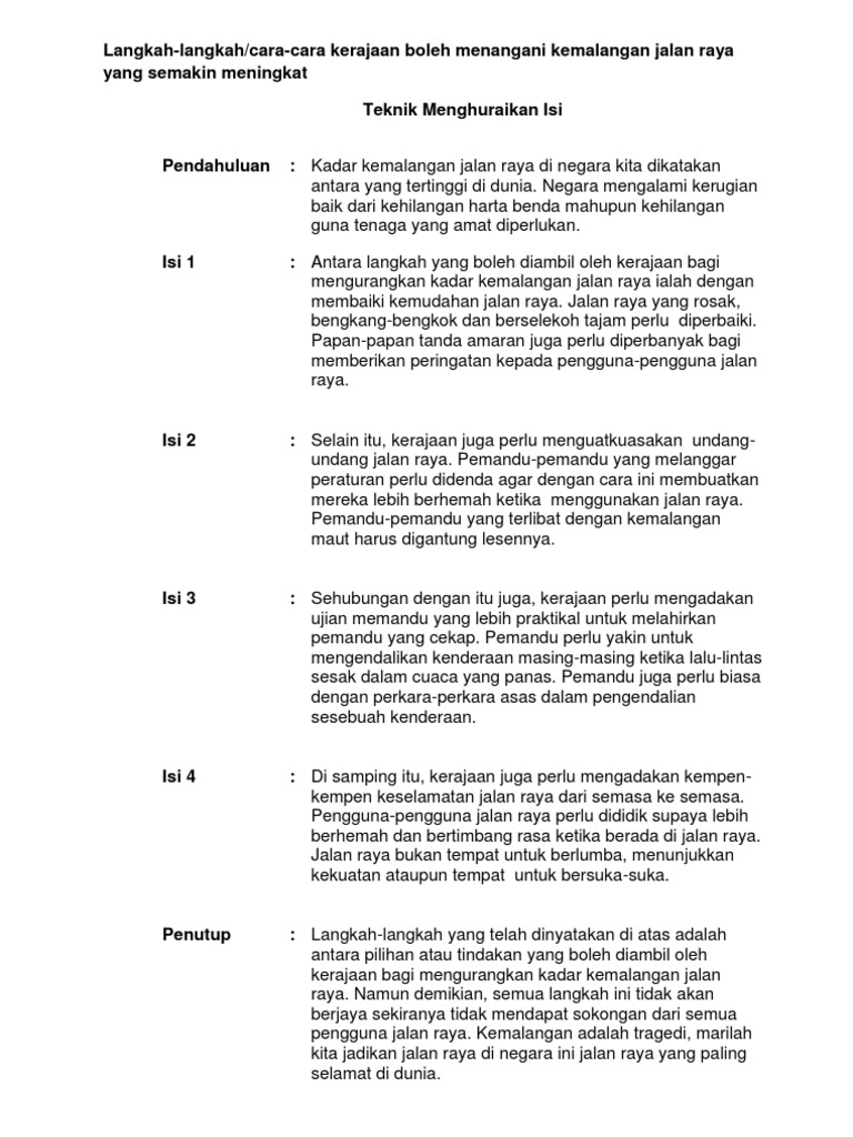 Undang undang dan perlembagaan berperanan untuk menyelesaikan masalah negara dan rakyat. Pastikan kita boleh melihat kenderaan dari semua arah. Hukuman berat mesti dikenakan terhadap sesiapa yang berani melanggar peraturan di jalan raya. Sebagai pejalan kaki kita harus memilih tempat yang paling selamat untuk melintas.