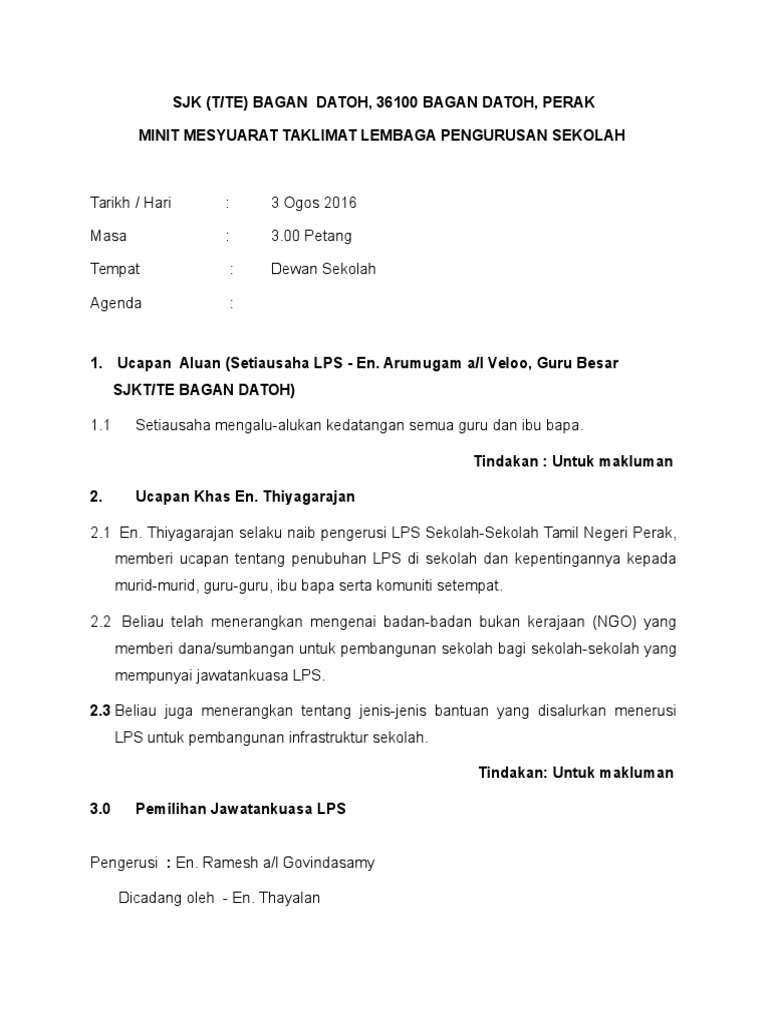 Contoh Minit Mesyuarat Mudah Dan Lengkap Jawatan Kosong