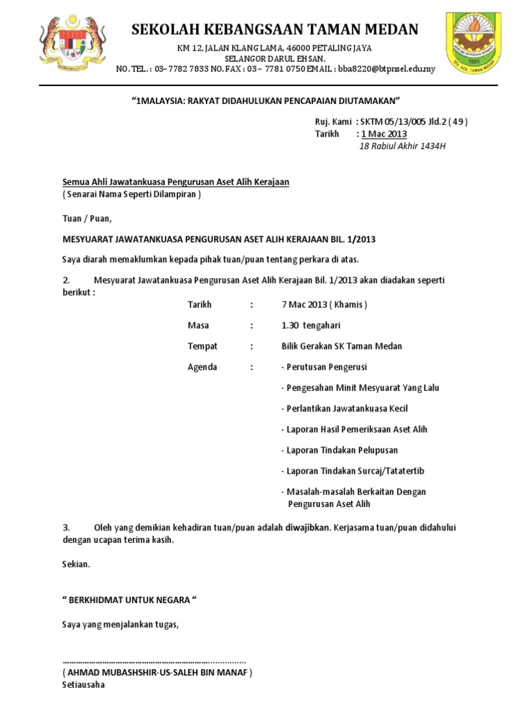 Contoh Surat Panggilan Mesyuarat