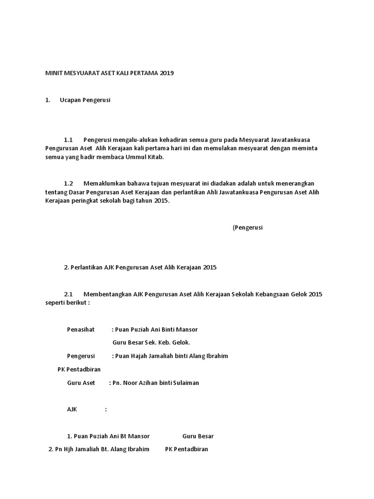 Minit Mesyuarat Pengurusan Dan Pentadbiran Bil 1 2019 Pages 1 13 Text Version Anyflip