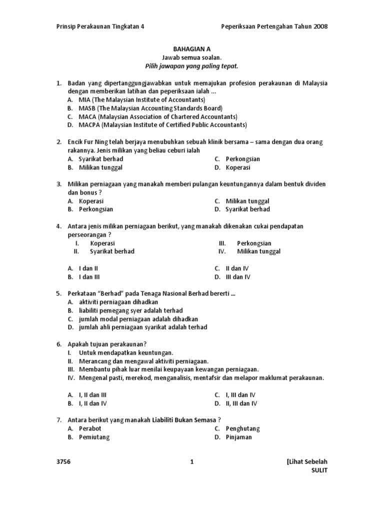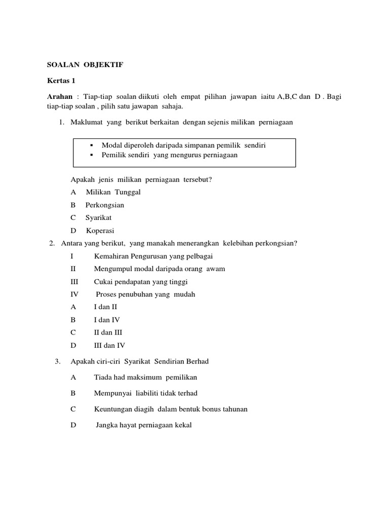 Soalan Objektif Perniagaan Pertengahan Tahun