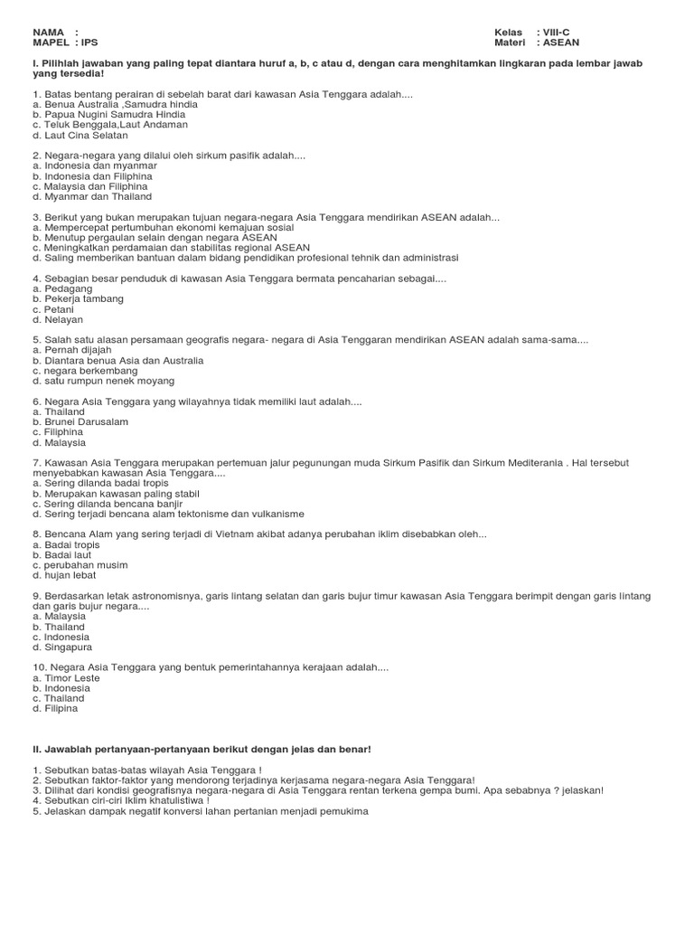 Geografi Kelas 8 Kondisi Geografis Negara Negara Asean