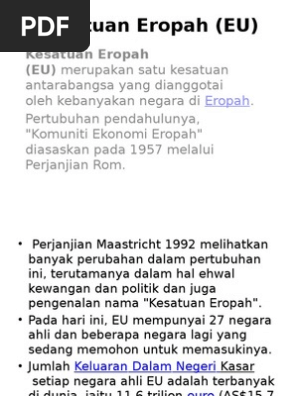 Kesatuan Eropah Eu Merupakan Satu Kesatuan