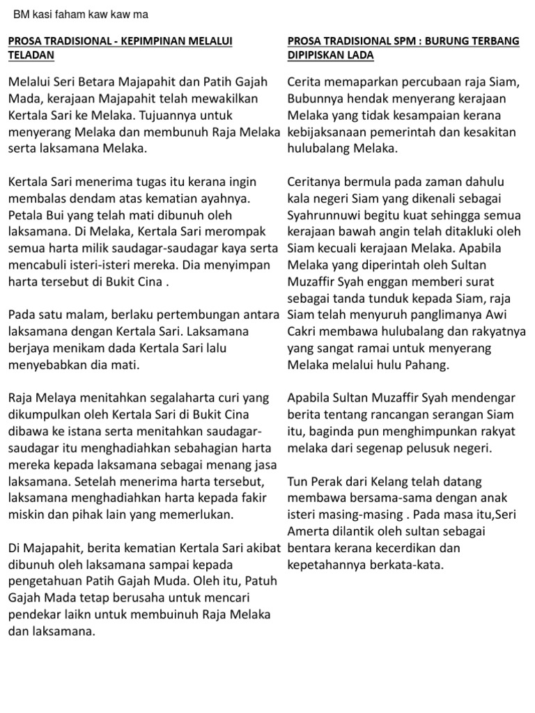 Laman Bahasa Melayu Spm Nota Prosa Tradisional Kepimpinan Melalui Teladan Ting 4