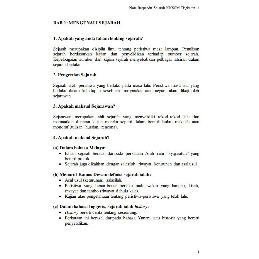 Sejarah Tingkatan 4 Pelbagai Nota Mengikut Bab Dan Soalan Latihan