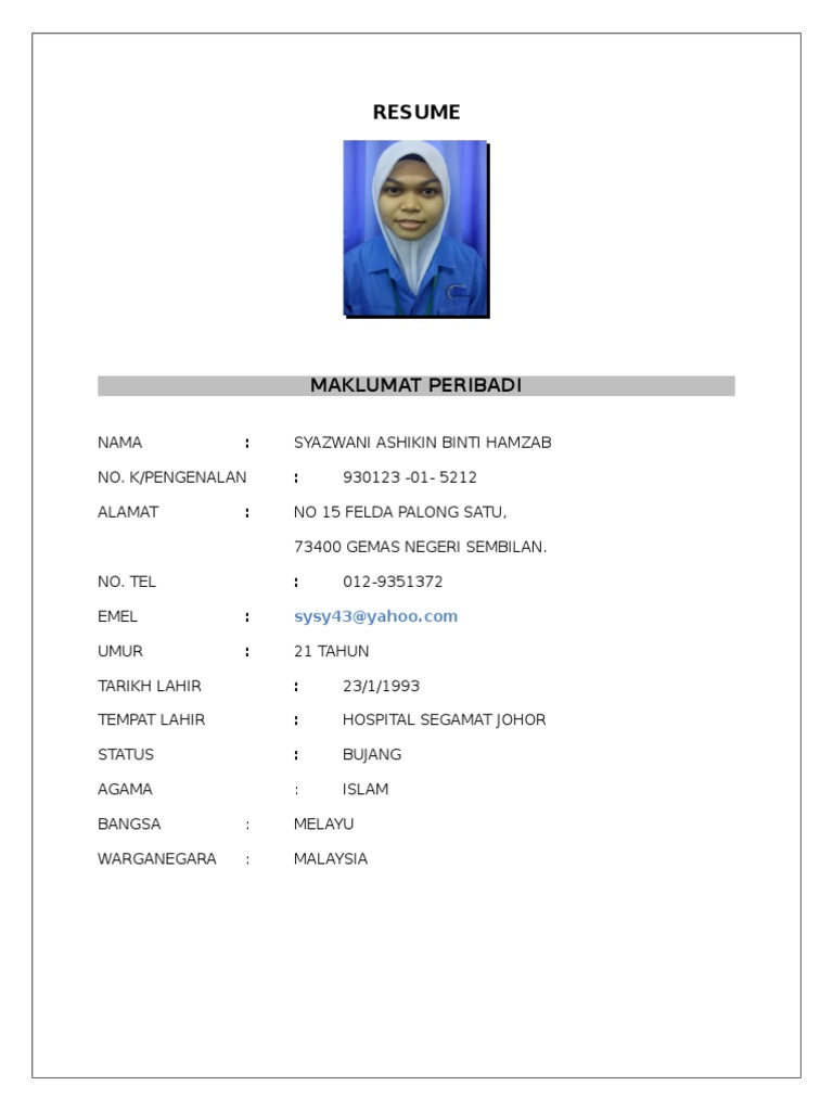 Panduan Membuat Resume Contoh Resume Boleh Diedit