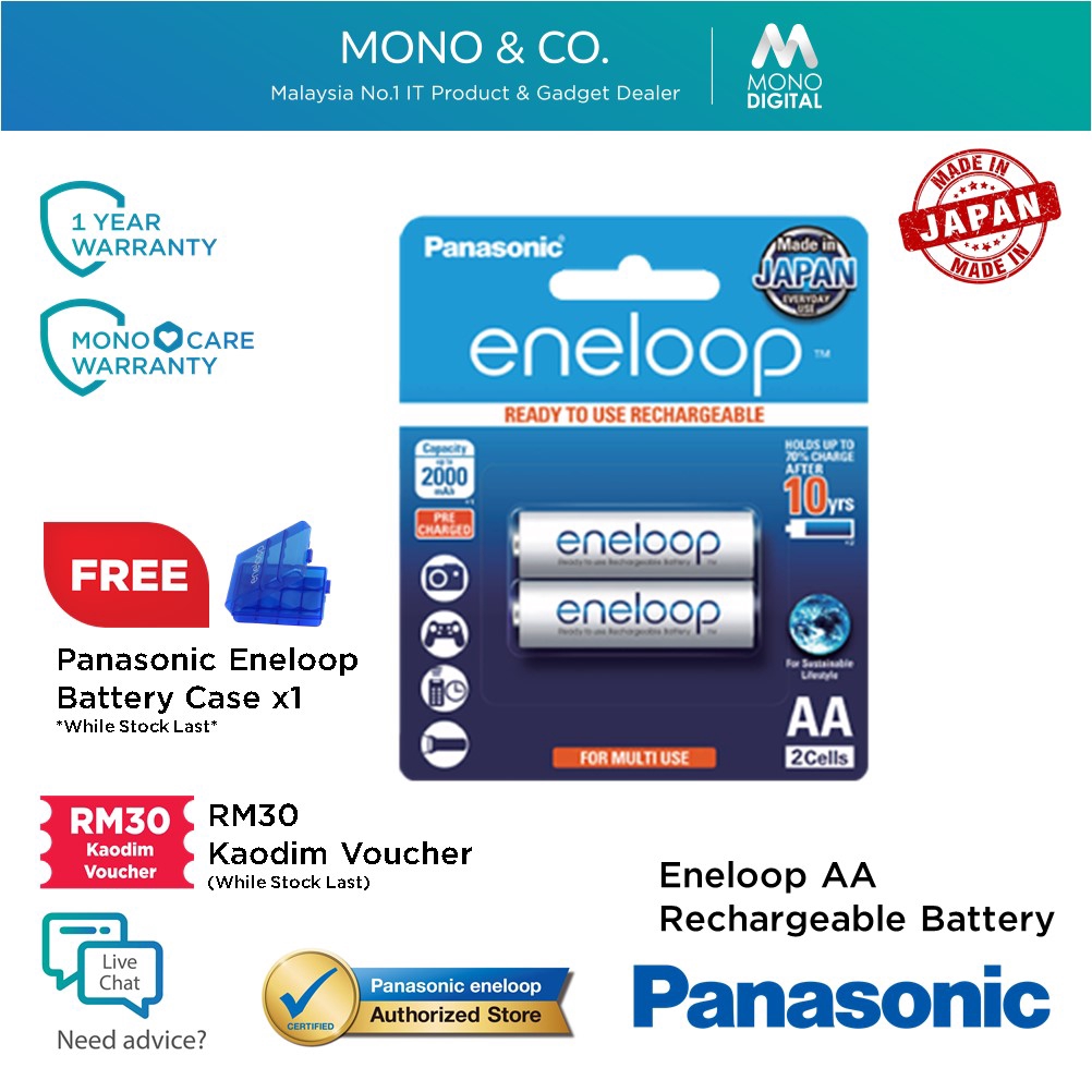 Panasonic Eneloop Aa Aaa 2 Cells 2000mah 800mah Rechargeable Battery Original Panasonic Malaysia Free Battery Case Shopee Malaysia