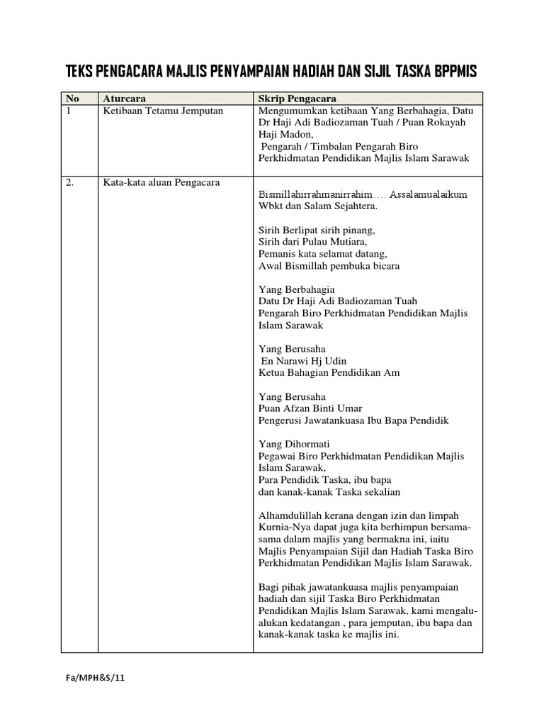 Teks Persaraan Guru Besar Docx