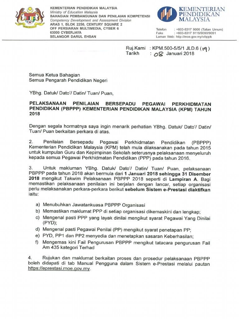 Pengumuman Kpm Penilaian Bersepadu Pegawai Perkhidmatan Pendidikan Pbppp Bil 1 2019 Bumi Gemilang